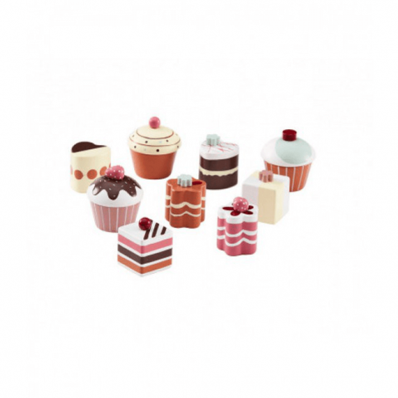 Ob pogledu na komplet devetih kosov okusnih slaščic, ki so v celoti izdelane iz lesa, se bodo tudi vam pocedile sline.  Vaš malček bo lahko z njimi priredil popoldansko čajanko, na katero bo povabil družino ali prijatelje.